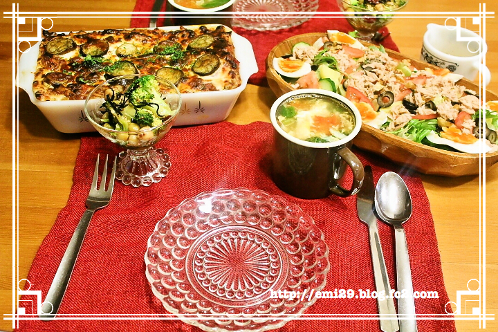 ラザニアの献立。~耐熱皿のチョイスが難しい~ : きよみんーむぅのゆる~いまいにち。