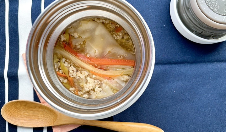 余った餃子の皮で♡絶品!『ひき肉とキャベツのワンタンスープ』。