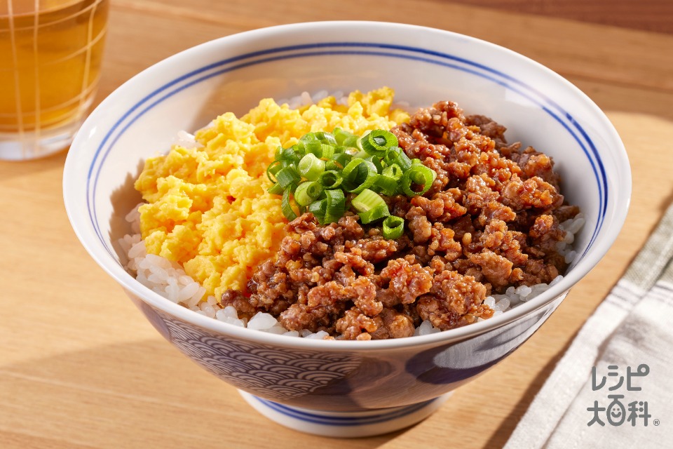 ひき肉と卵でプロの味 絶品そぼろ丼のレシピ!フライパン1つで簡単10分 基本の和食。