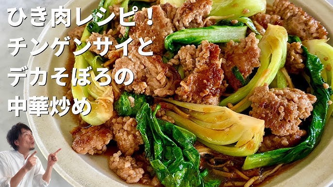 簡単ボリューム満点の中華レシピ!豚ひき肉とチンゲンサイで作るデカそぼろの中華風うまみ炒め。