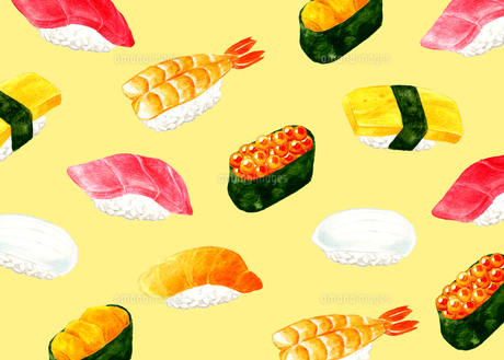 お寿司の背景素材 和食の手描き水彩イラスト素材のイラスト素材FYI05000840ストックフォトの QleanMarket キュリンマーケット。