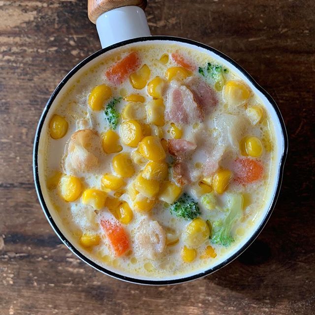 塩パンとじゃがいもクリームスープの朝ごはんです。 ·献立塩パン クリームスープ 目玉焼き カラーピーマンのマリネ 黄桃、梨、ぶどう コーヒー· · · · · · ·塩パンスープ目玉焼きfriedegg果物あさごはん家庭料理献立朝ごぱんmorning。