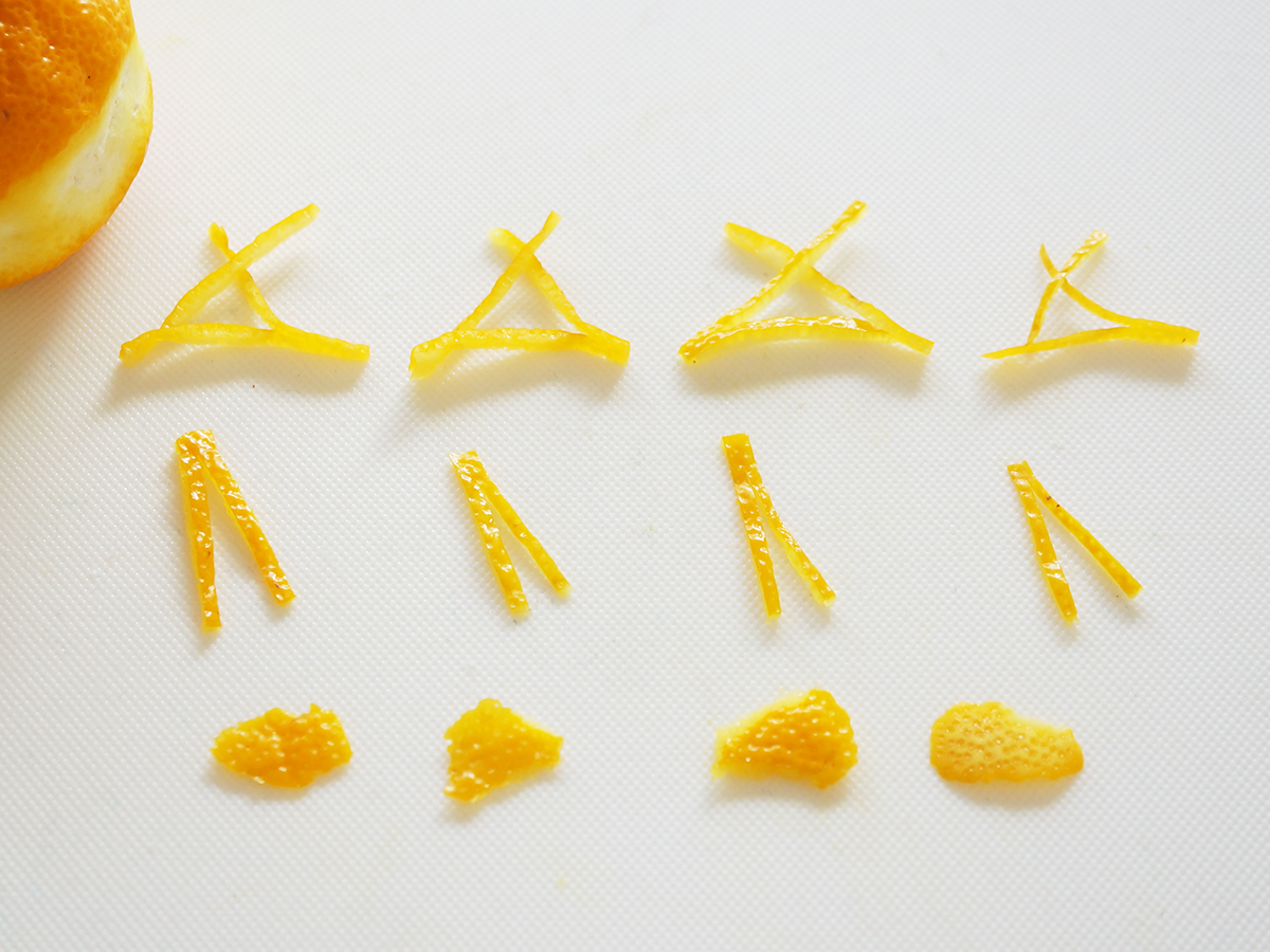 へぎ柚子と松葉柚子、折れ松葉の切り方。