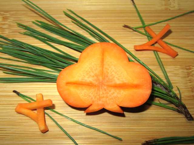 飾り切り、木の葉きゅうり、きゅうり松、きゅうり折れ松葉、より人参 - 魚料理と簡単レシピ。