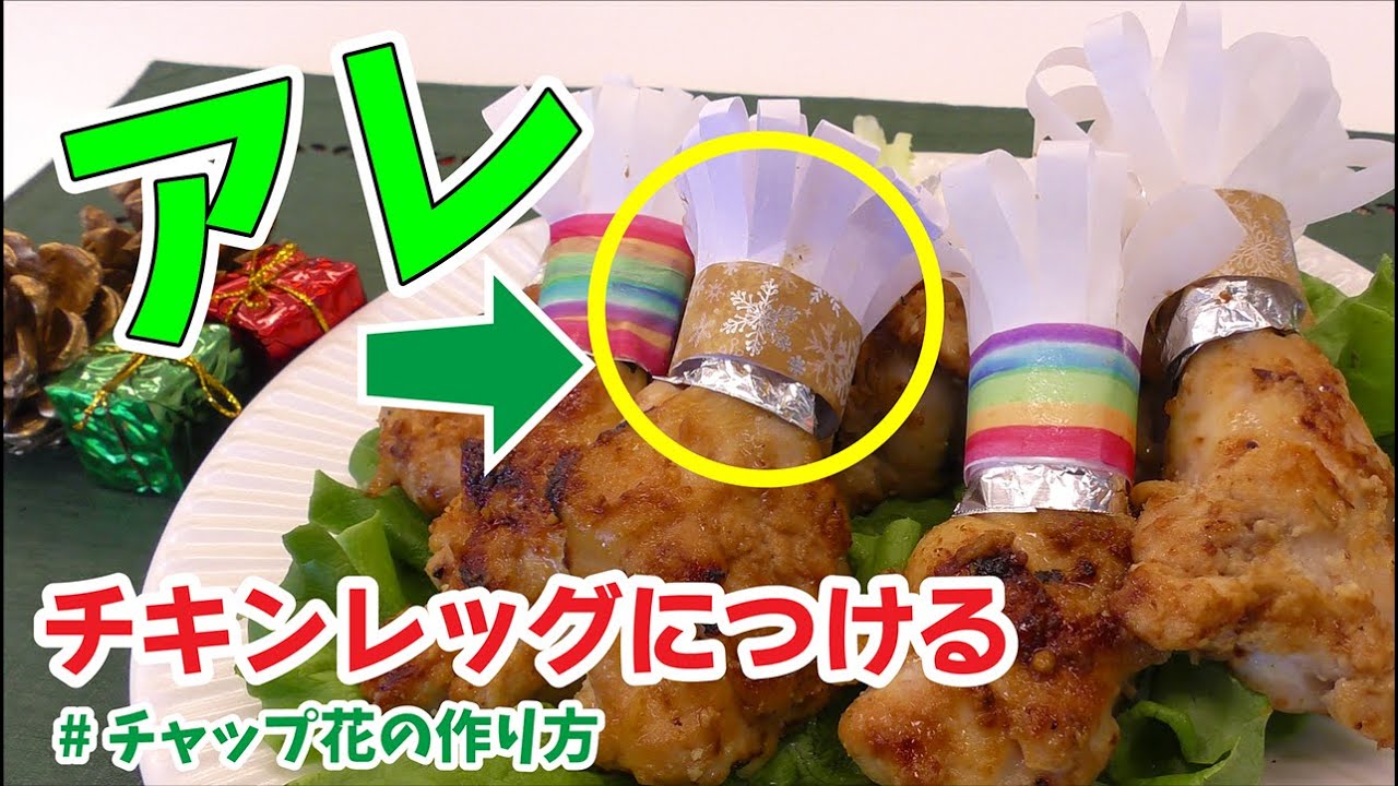 チャップ花 チキンレッグの持ち手・紙飾り の作り方 - YouTube。
