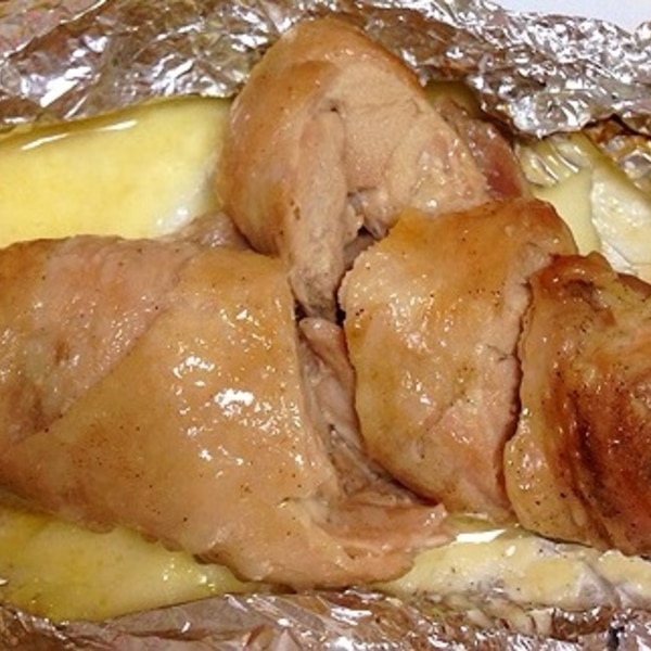 鶏肉のゆず風味 簡単 酒蒸し風ホイル焼き。