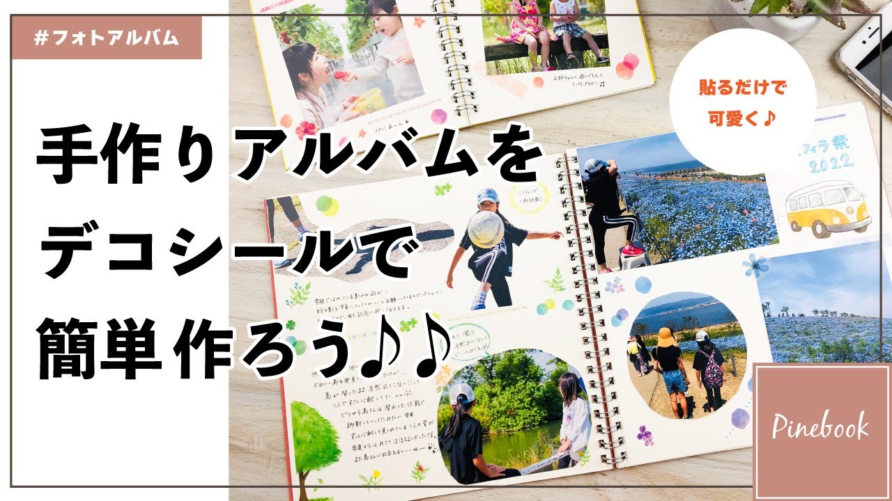 手作りアルバム アルバムデコで思い出をおしゃれに♪フォト・スクラップアルバムパインブック文具マスキングシール。