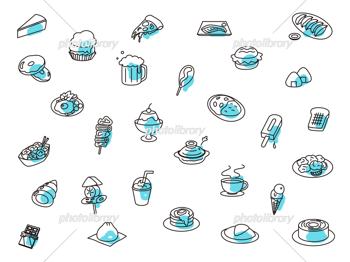 アウトラインの料理食べ物アイコンセット 水色のイラスト素材103327215- PIXTA。