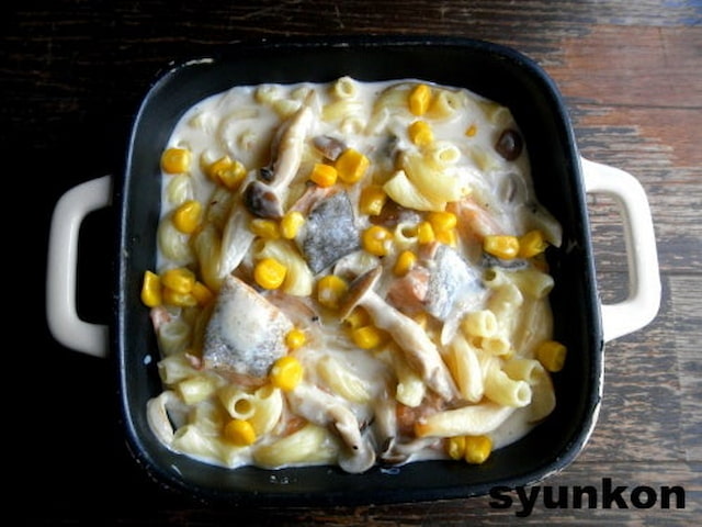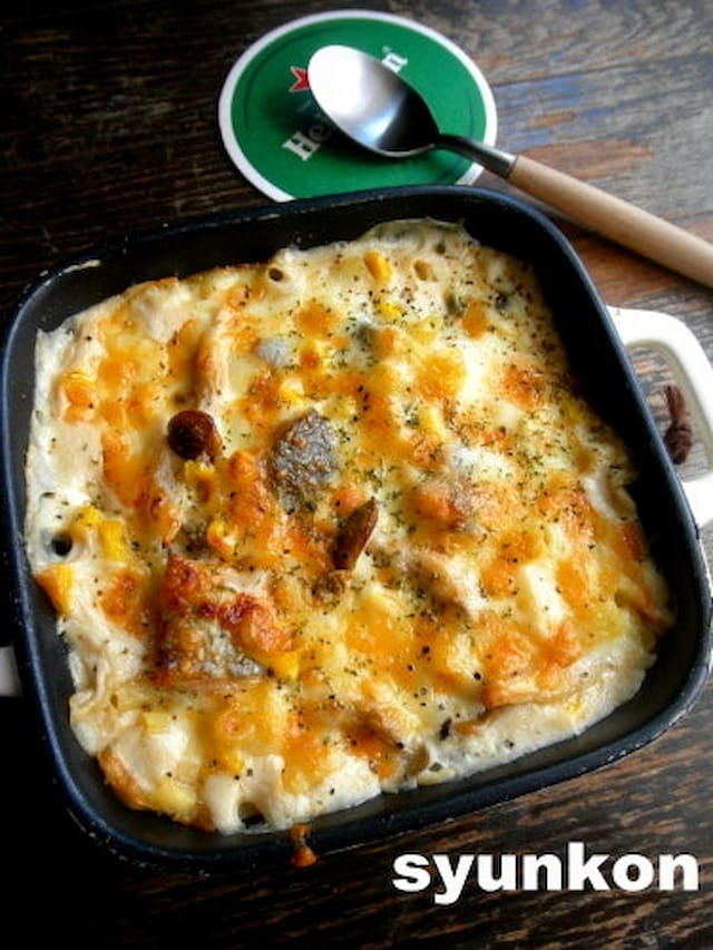 フライパン1つで簡単!「鮭としめじのマカロニグラタン」レシピフーディストノート。