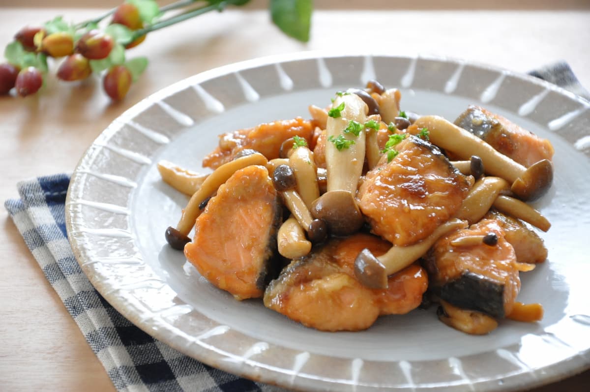 秋のレシピ4品! きのこと鮭のガーリックマヨしょうゆと舞茸ご飯など。
