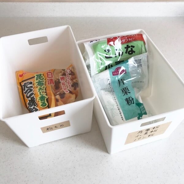 粉ものの収納・悩んでいた小麦粉類の収納問題が解決!ダイソーと無印良品でスッキリ - キッチン収納。