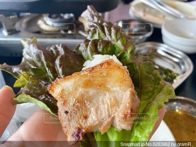 サンチュで巻くサムギョプサル料理の写真素材38284933- PIXTA。