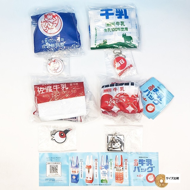全国牛乳バッグ ケンエレファント全4種フルコンプセット甲斐みのり監修 ミルク デザイン グッズ 手提げ袋 新鮮な国産 ガチャガチャ かわいいアクリルチャーム カプセルトイ 即納 在庫品数量限定フルコンプリートお宝市場BASE店フィギュア。