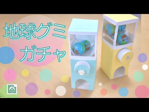 地球グミガチャ牛乳パックで作るガチャガチャ ・ガチャポン夏休みの工作、自由研究にも!paper craft PlanetGummi Japanese Recycled Craft Idea。