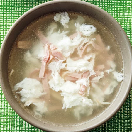 レシピあり🙆♀️ .卵白のコンソメスープ.卵白卵白レシピおうちごはんおうちレストランスープスープレシピヘルシー. 手作りアイスにハマっており、アイスを作ると卵白が余るので、適宜スープなどにして消費しています😂 今回はコンソメスープを作り。