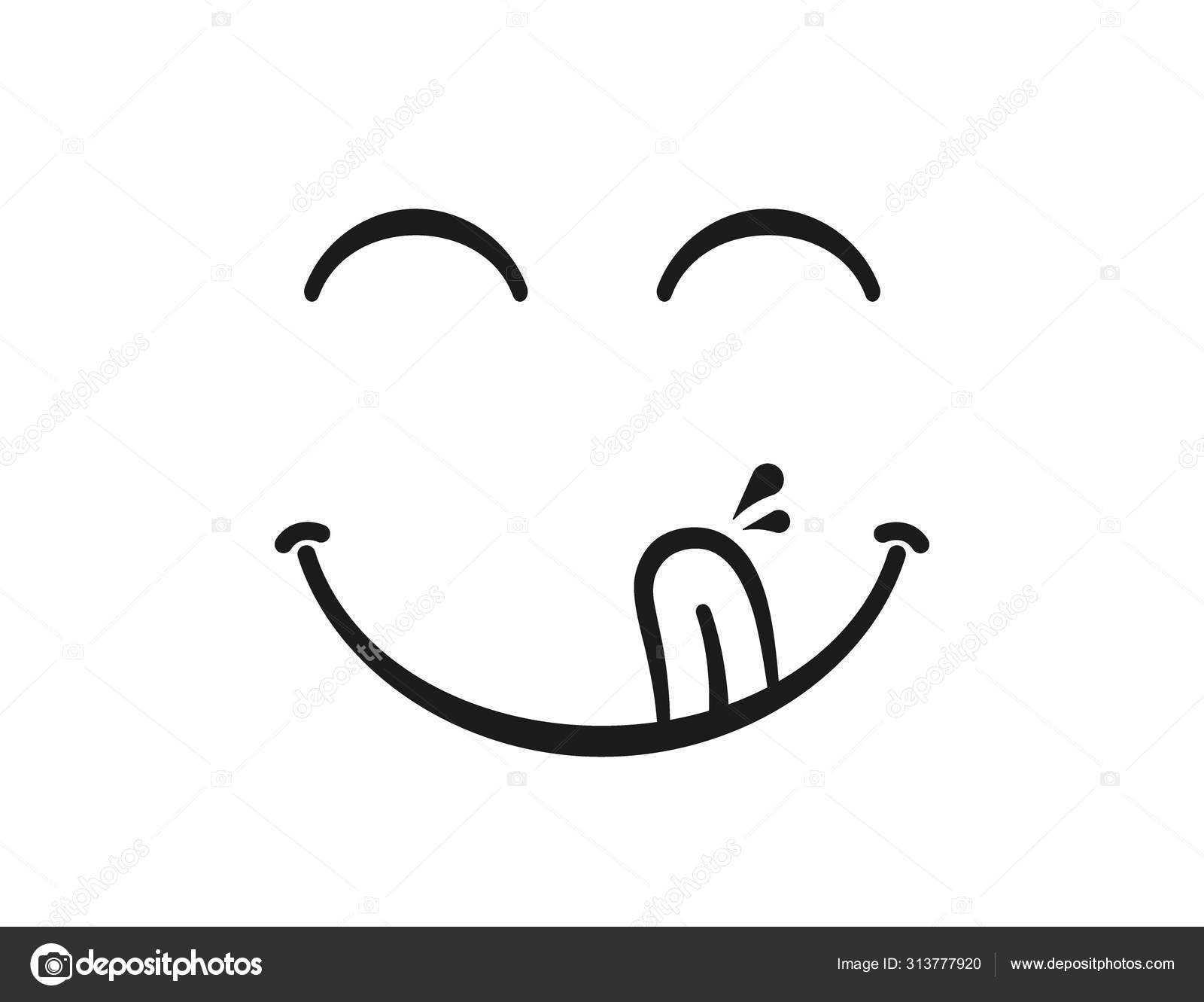 笑顔だおいしい、おいしい食べる絵文字の顔は口と舌で食べるグルメを楽しむ味 ストックベクター ©NazArtVector 313777920。