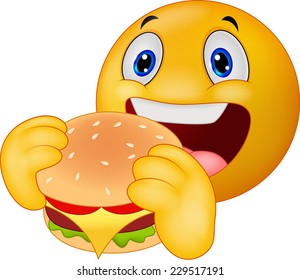 絵文字を食べるハンバーガー文字ベクトルデザイン絵文字飢えた絵文字Premiumベクトル素材。