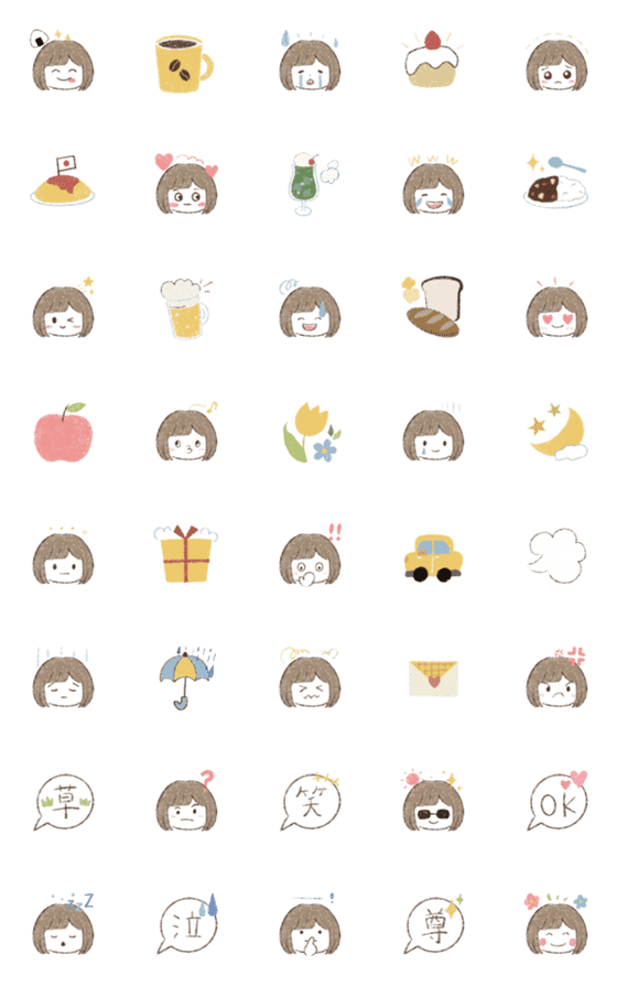 手書き風♡絵文字のLINE絵文字画像、情報など。