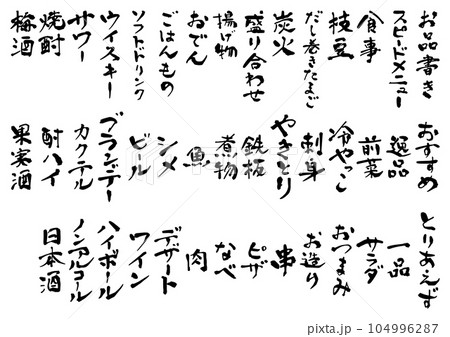 居酒屋風フード・ドリンクメニュー 筆文字のイラスト素材104996287- PIXTA。