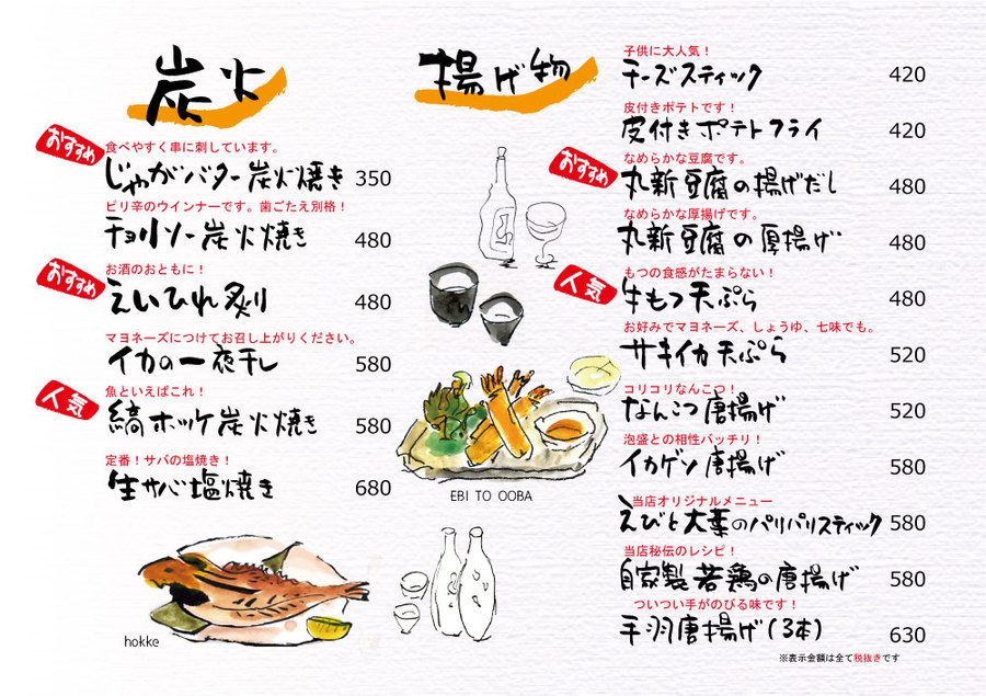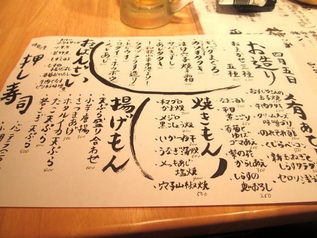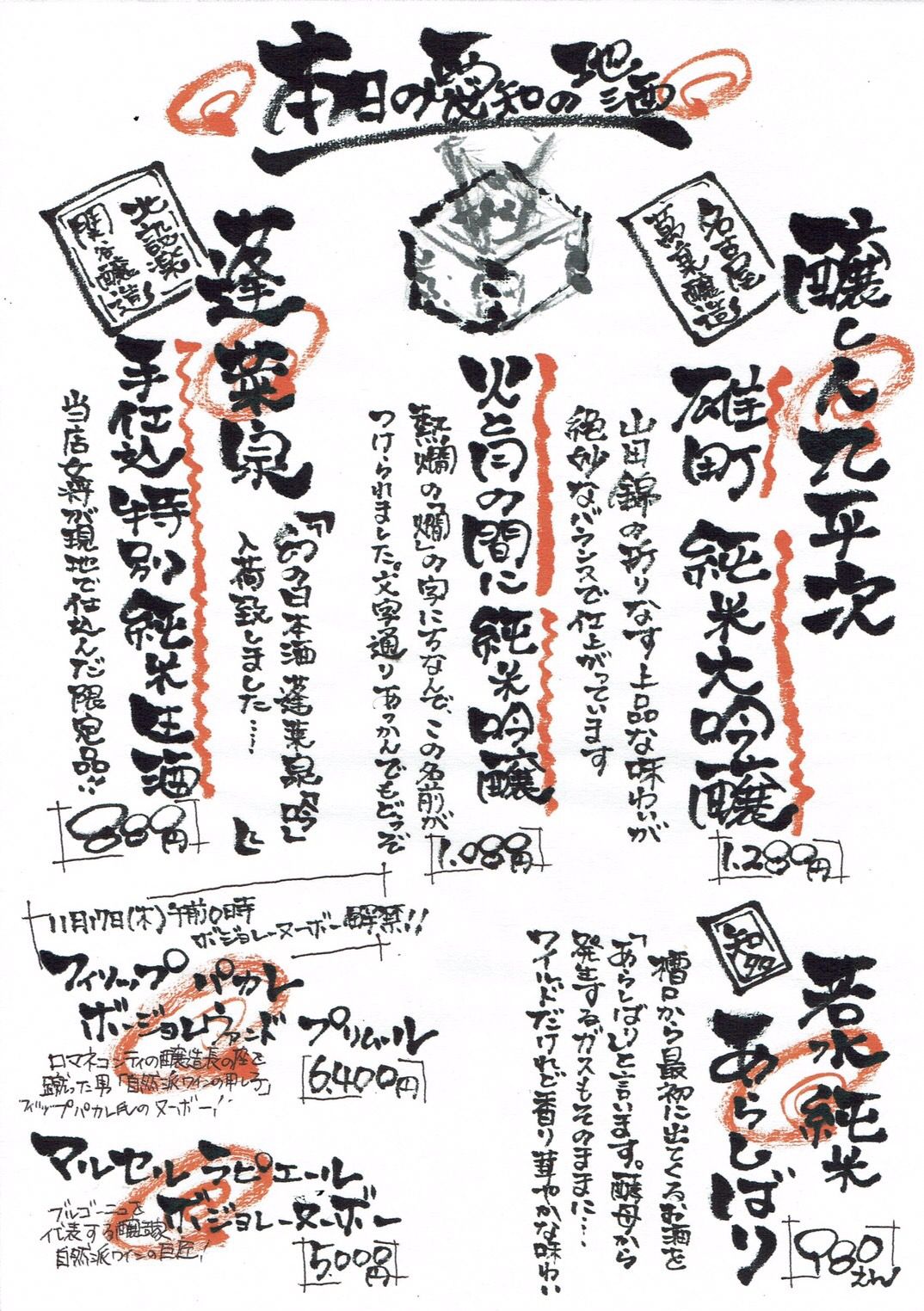 居酒屋メニュー 手書き文字とイラスト: 隆庵筆文字日記。