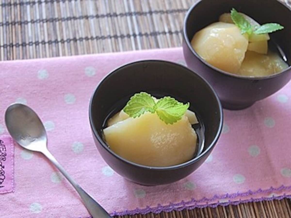 レンジで作れる桃のコンポート。