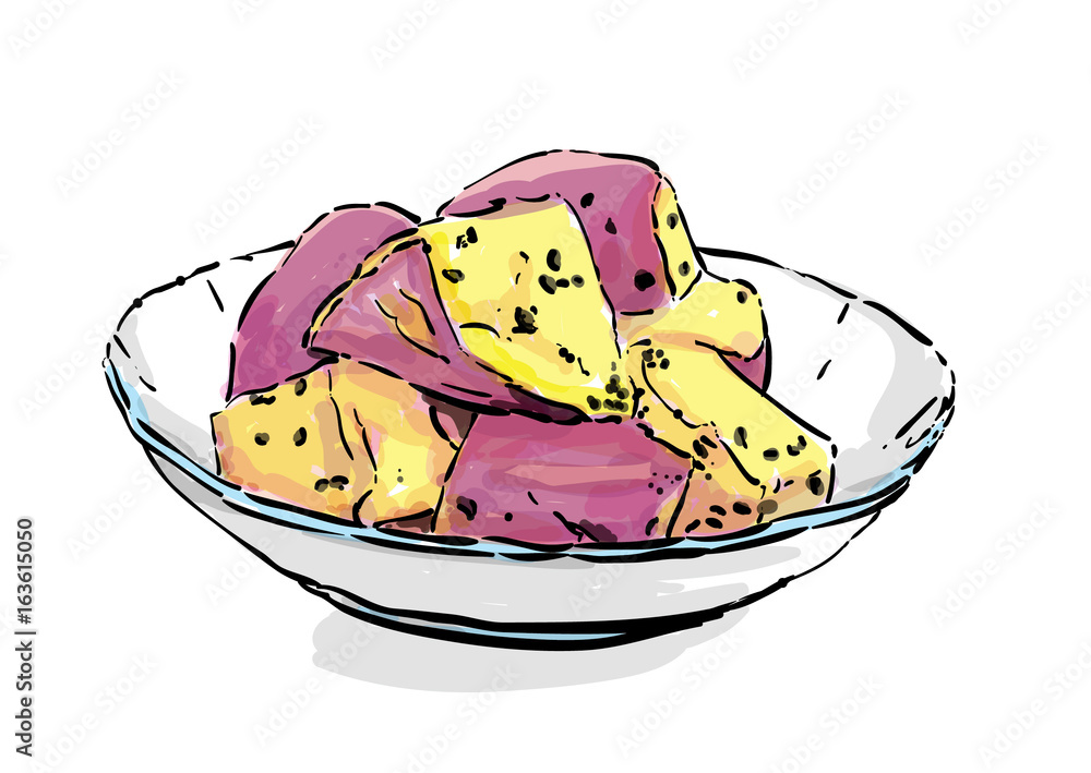 黒胡麻を振った大学芋の美味しそうな手描きイラスト207637716- イメージマート。