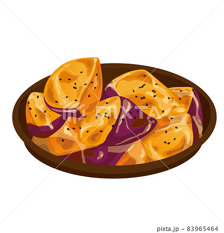 黒い皿に盛りつけた大学芋 イラスト素材7466753- フォトライブラリ。