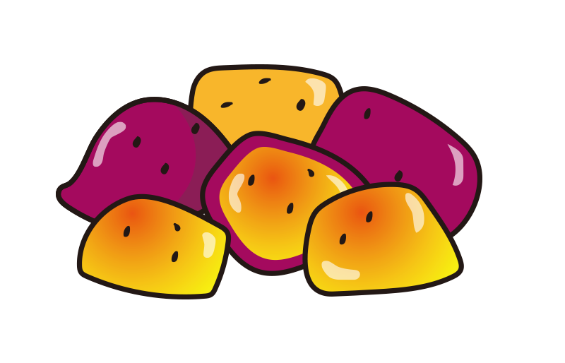 つやつや大学芋のフリーイラスト素材 背景透過PNG・秋のおやつ- フリーかわいい- かわいい素材、ぜんぶ無料。