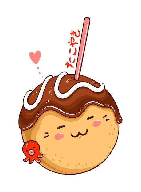 かわいいたこ焼き文字日本食漫画ベクトルイラストPremiumベクトル素材。