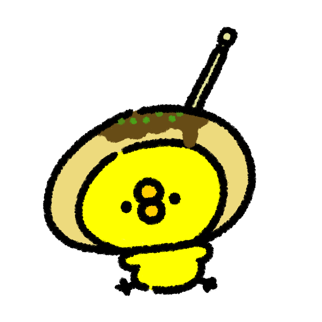 たこ焼きのコスプレをしているひよこのイラストゆるくてかわいい無料イラスト・アイコン素材屋「ぴよたそ」。