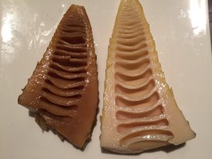 タケノコ のアク抜き比較 米ぬか・重曹・水のみ。