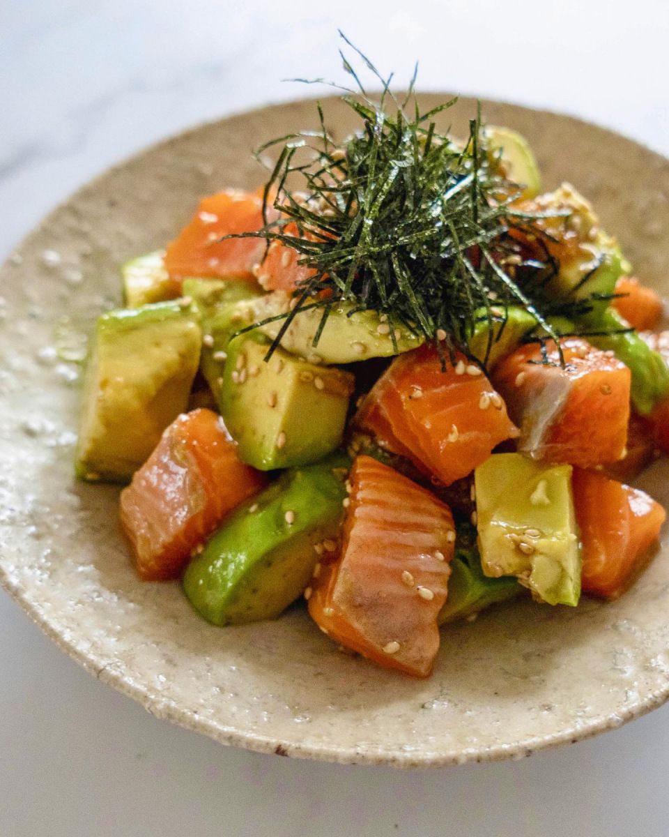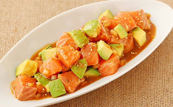 ノルウェーサーモンとアボカドのにんにく塩麹和え: 旧「おいしい毎日しあわせごはん」。