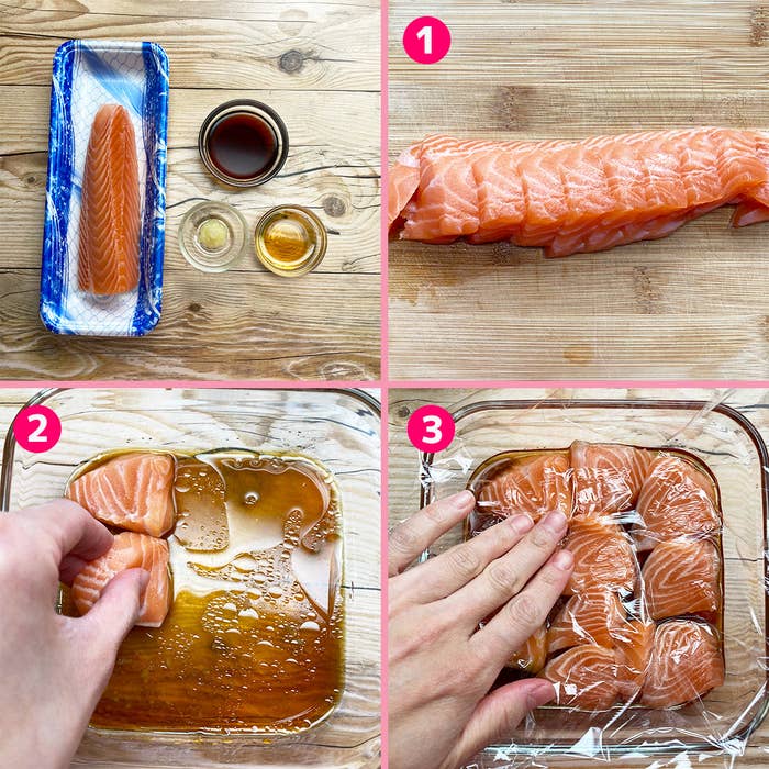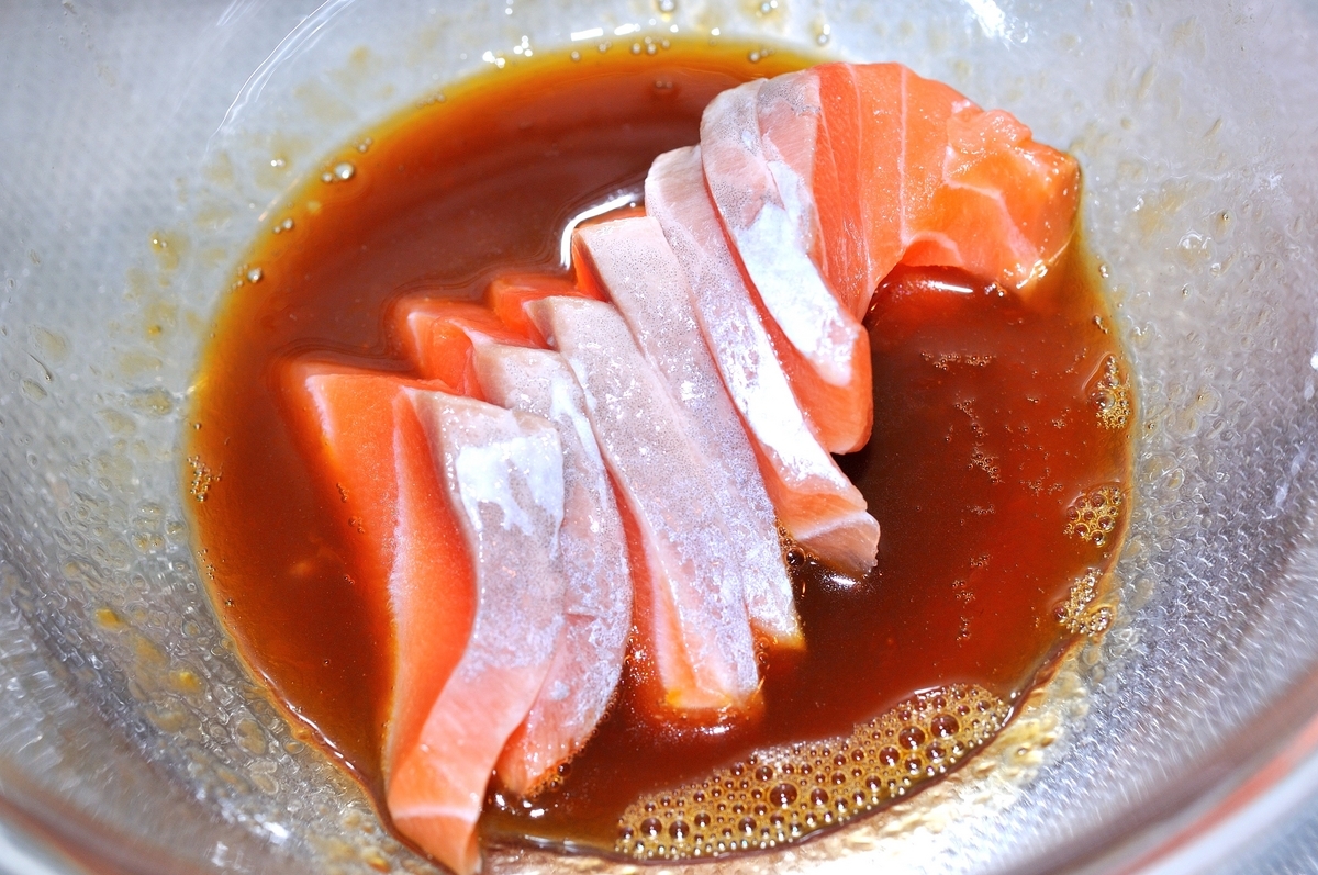 朝「サーモン」をめんつゆごま油に漬けるだけ!夕食は冷蔵庫から出すだけの「サーモンのめんつゆ漬け」。
