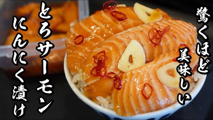 サーモンにんにく漬け 丼作りのプロが教えるやばい漬けの作り方 - YouTube。