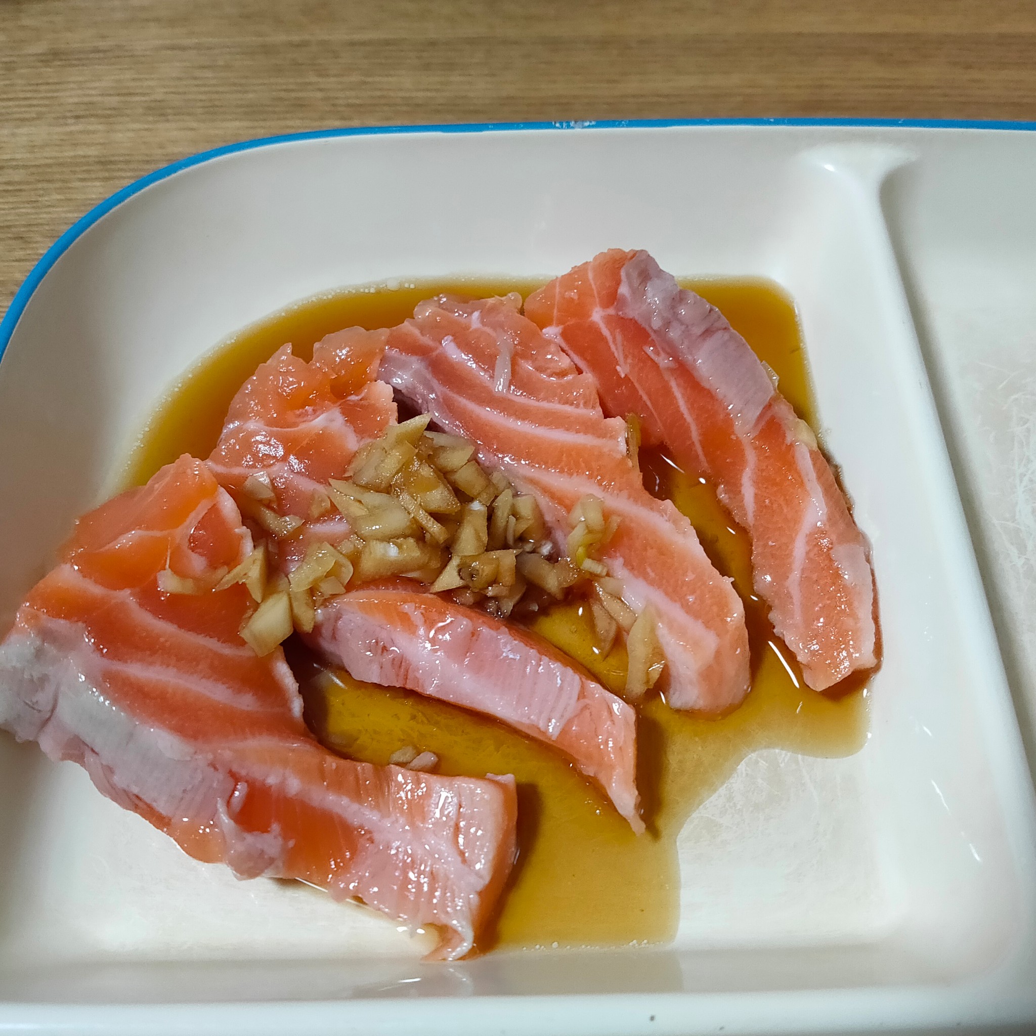 サーモンの1番ヤバい食べ方 にんにく醤油漬け。