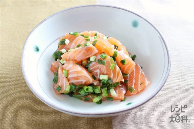 ごま油で絶品!『サーモンの塩ユッケ』のレシピ。
