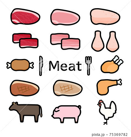 シンプルでかわいいお肉のイラストセット 白黒グレーのイラスト素材75360037- PIXTA。