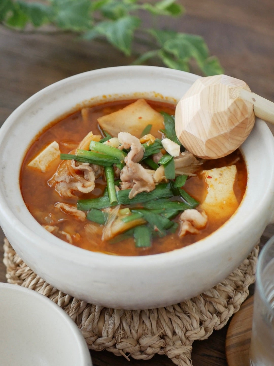 二日酔い だなって思ったら、キムチチゲ。ちょうどジップロックが爆発しそうなくらい発酵が進んだキムチが冷蔵庫にあったので豚バラとしっかり炒めて、豆腐は近所の美味しい豆腐屋さんで買ってきた物。 二日酔いで世界が終わると思ってたけど、キムチチゲ食べたら未来が見えた。
