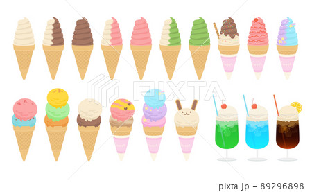 かわいい ソフトクリーム アイスクリーム クリームソーダのイラストセットのイラスト素材89296898- PIXTA。