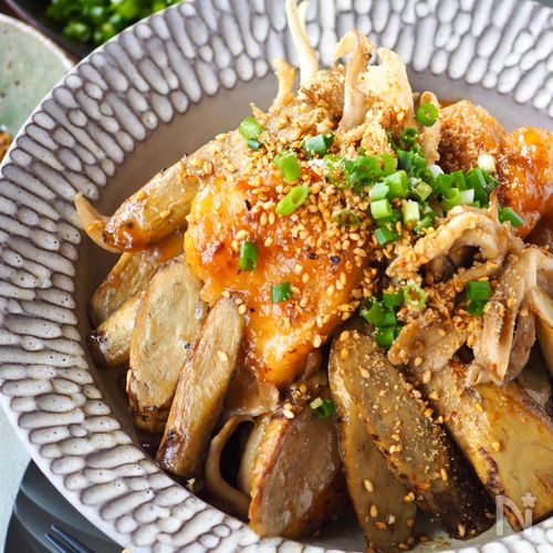 ご飯が進む 鶏むね肉とレンチンごぼうの甘辛ごま炒め。