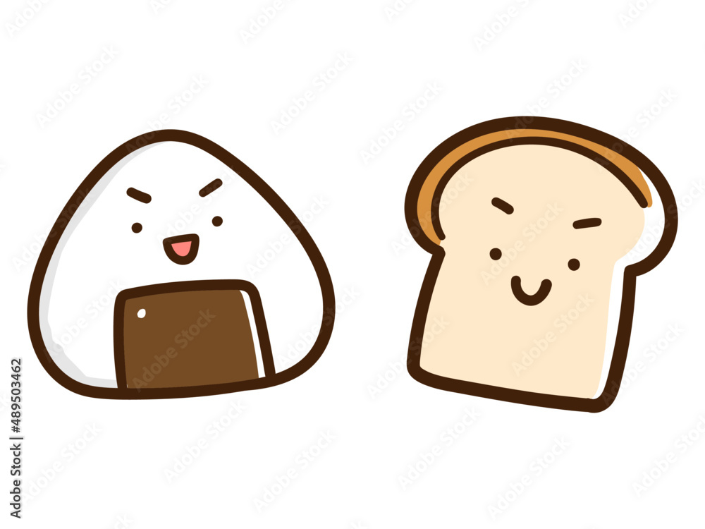 おにぎりと食パンのかわいいキャラクターの手描き風イラスト の Stock ベクターAdobe Stock。