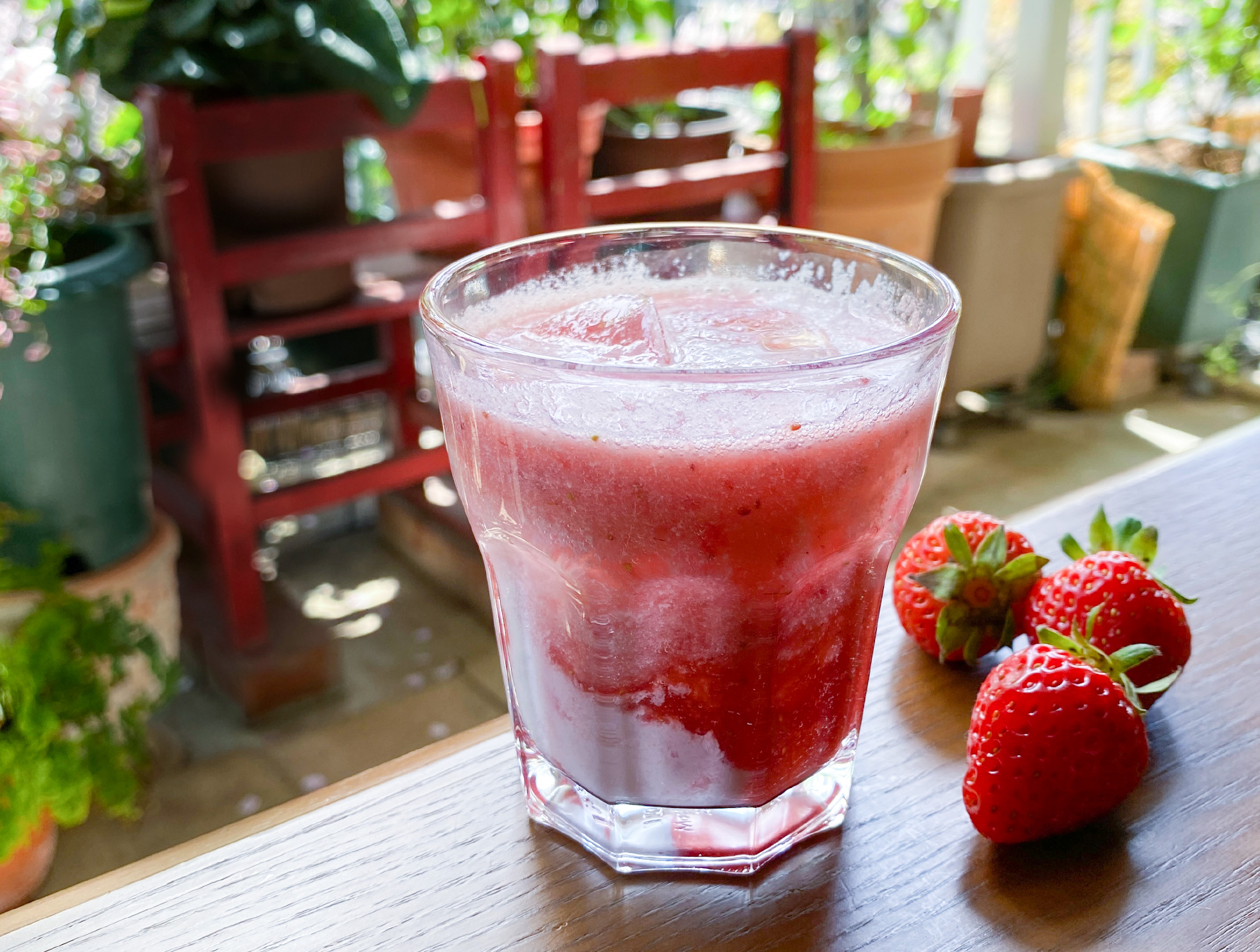 いちごミルクの素でストロベリーシェイクの作り方🍓ミキサーなしで簡単!手作りドリンクレシピ。