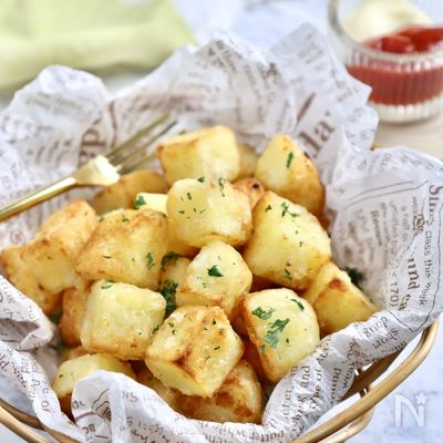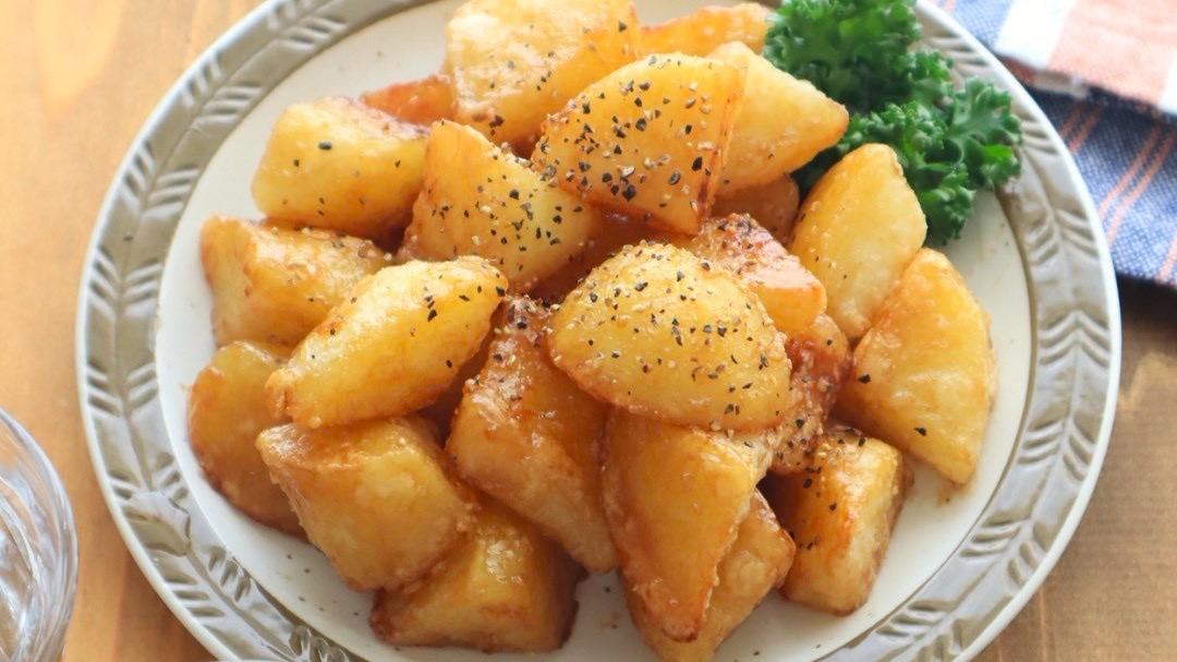 切って焼くだけ じゃがいもの簡単レシピ 揚げないのに驚くほどうまい!じゃがいもバター醤油焼き! フライドポテト・作り置き・節約おかず。