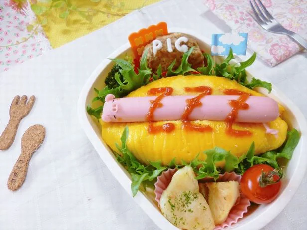魚肉ソーセージの豚」という全方向に不思議なオム弁当 キャラ弁- レタスクラブ。