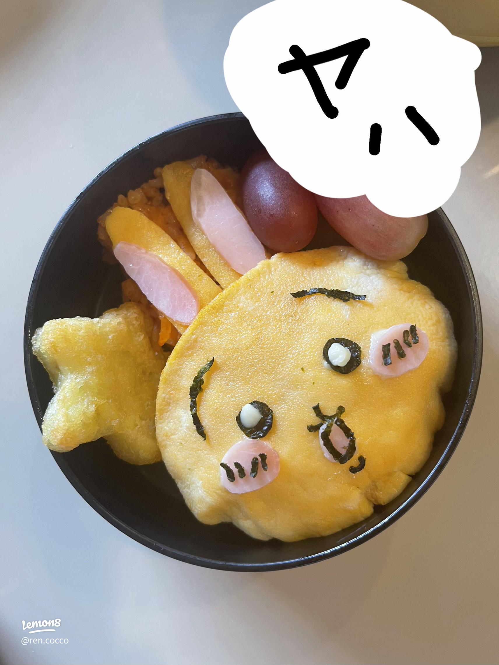 きい on X: "誰が「オムライス」は卵でチキンライスを包むと決めたのか?これぞオムライスぢゃ!卵 はチキンライスの下だよっ。 顔を見せたいばっかりにきいのキャラ弁今日のお弁当キャラ弁おべんとう弁当お弁当オムライスhttps:t.co uojdT6qxJE"X。