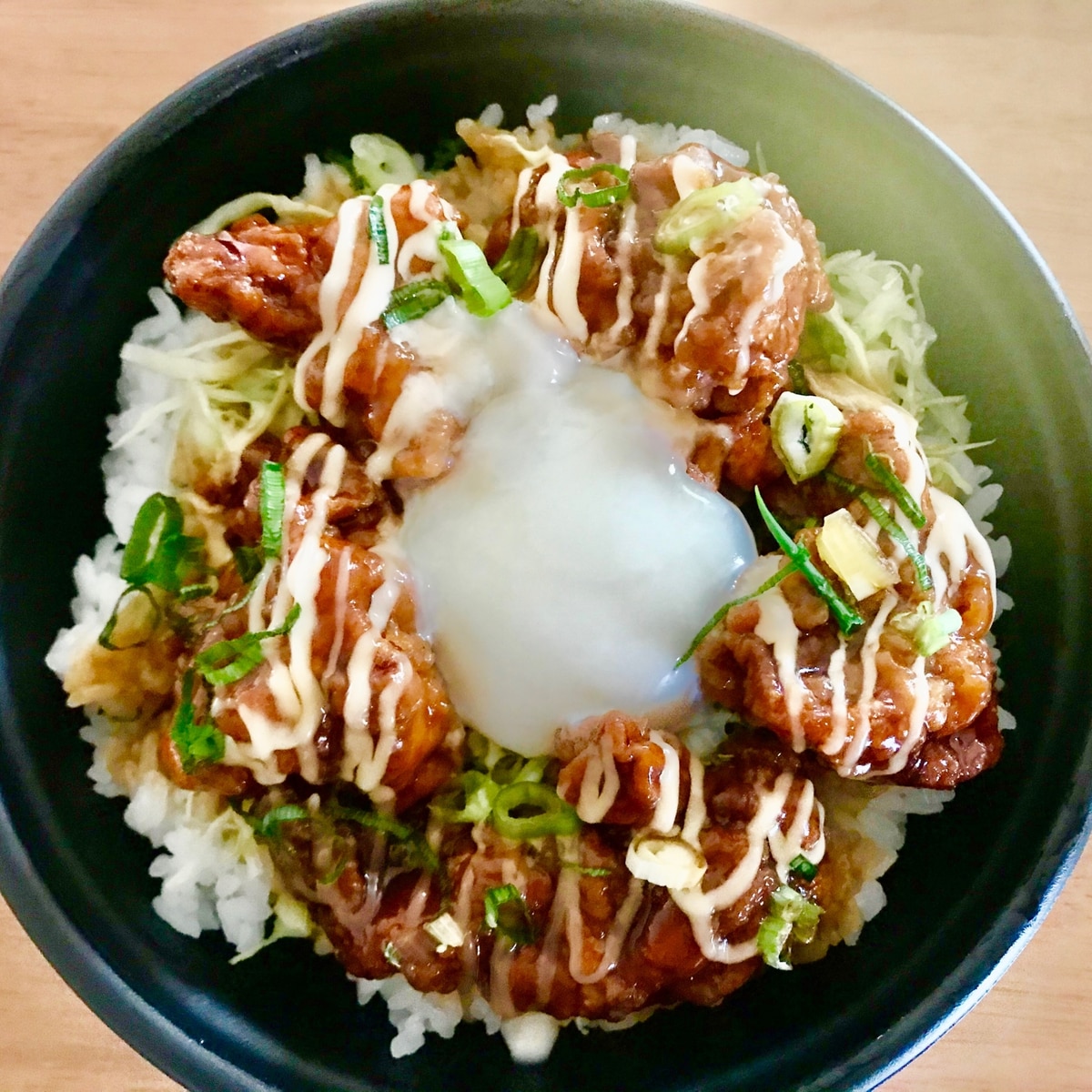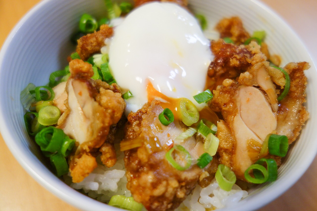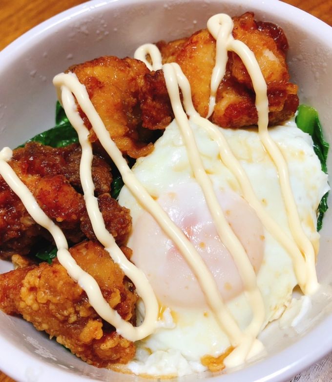 唐揚げ丼 からあげ+温玉で絶品からたま丼 レシピ- おおまめとまめ育児日記。