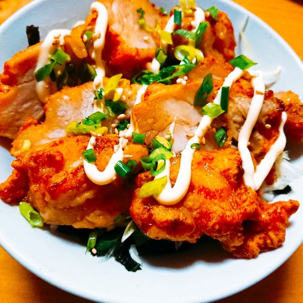 ガッツリ系☆ピリ辛鶏モモ唐揚げ丼 by ✽チョコⅠH✽クックパッド簡単おいしいみんなのレシピが392万品。