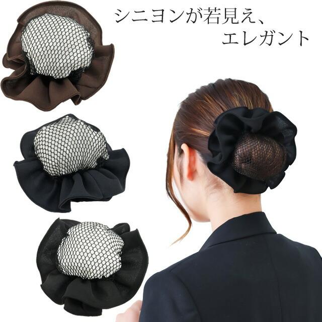 お団子カバー シニヨン ネット付き シュシュ風 若見え エレガントまとめ髪 接客 仕事 飲食 受付 オフィス シニヨンリング おだんご お団子 ヘア母の日 ギフト プレゼント美人髪KOEIDOヘアアクセサリ。
