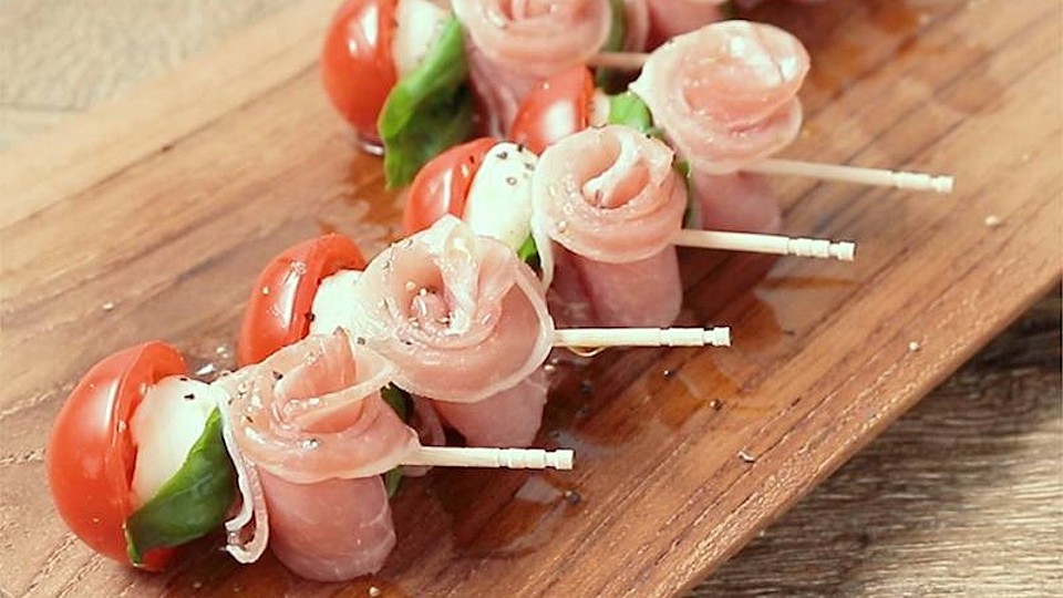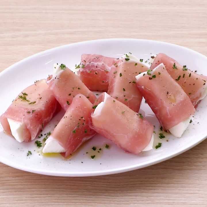 おつまみにぴったり! モッツァレラチーズの生ハム巻き。