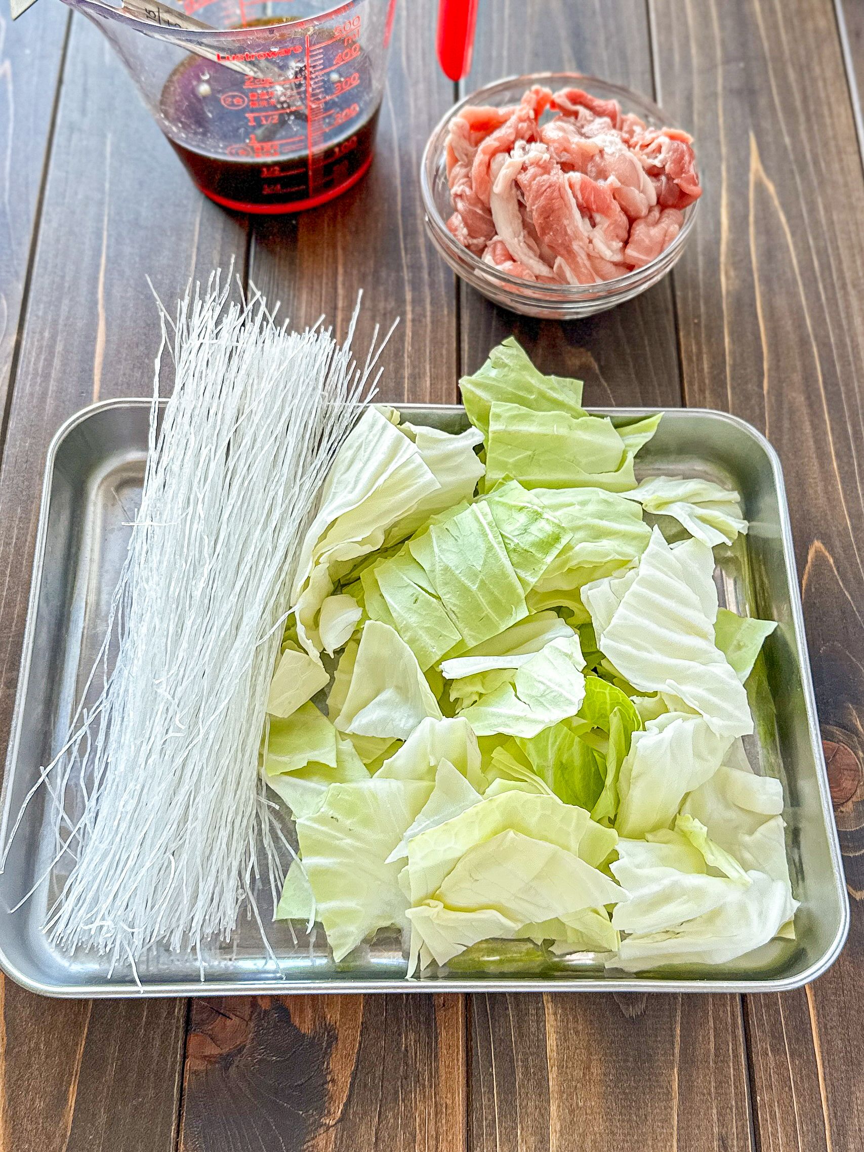 取り分けレシピ 春雨とキャベツのひき肉炒めセット。